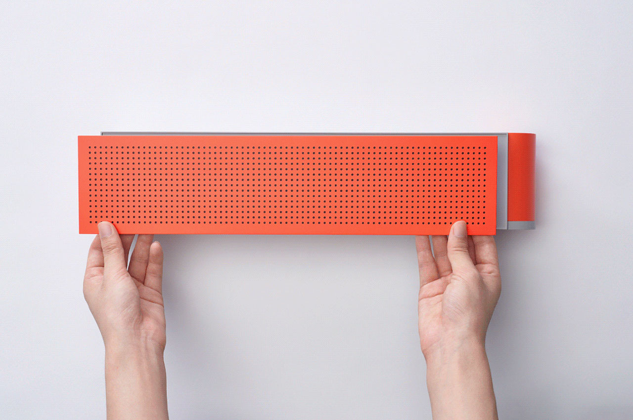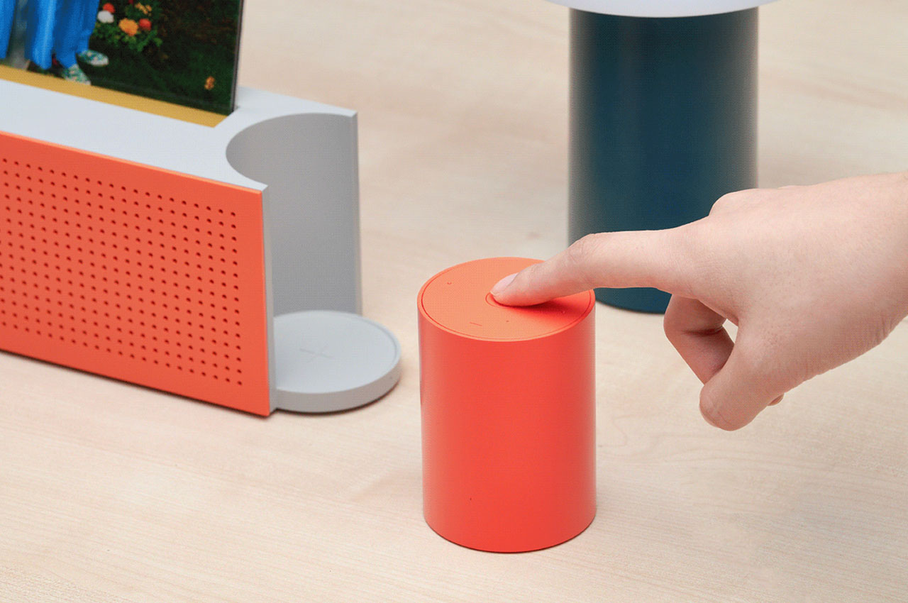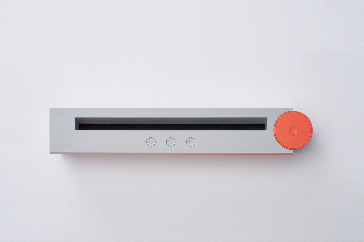 It is envisioned with a detachable – cylindrical – wireless controller stationed next to the speaker (also with onboard controls), which would allow you to play music from the slotted record from a distance. Digitalizing the idea of a record player is not limited to size and altered vertical design, it is presented with state-of-the-art listening modes including spatial sound mode and a voice-specific mode that would allow you to customize sound according to the artist’s content.